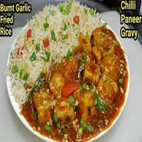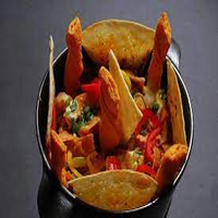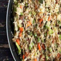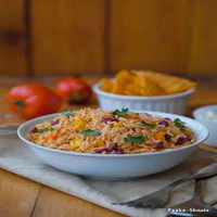 chop bell pepper onion corn capsicum & beans in tangi tomato sauce with flavoured rice