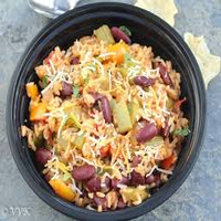Cilandro rice topped with maxican seasoning spiced beans fresh iceberg & melted cheddar cheese